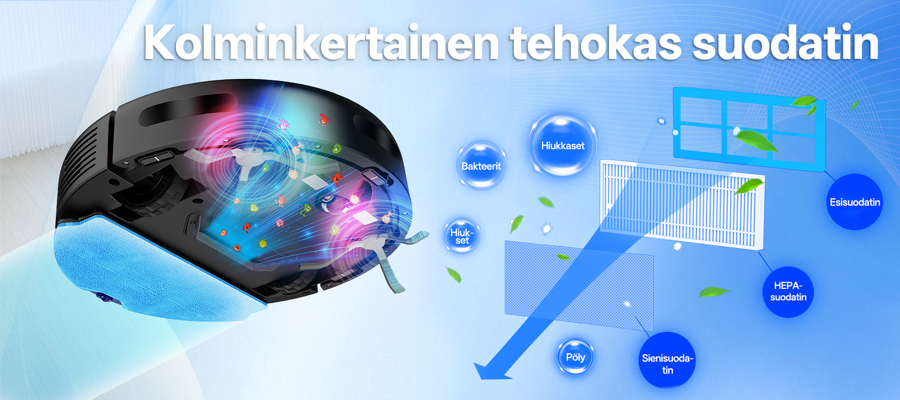 - Viisi ydinteknologiaa-Saksasta tuodut komponentit takaavat ylivoimaisen suorituskyvyn ja älykkään puhdistuksen.
