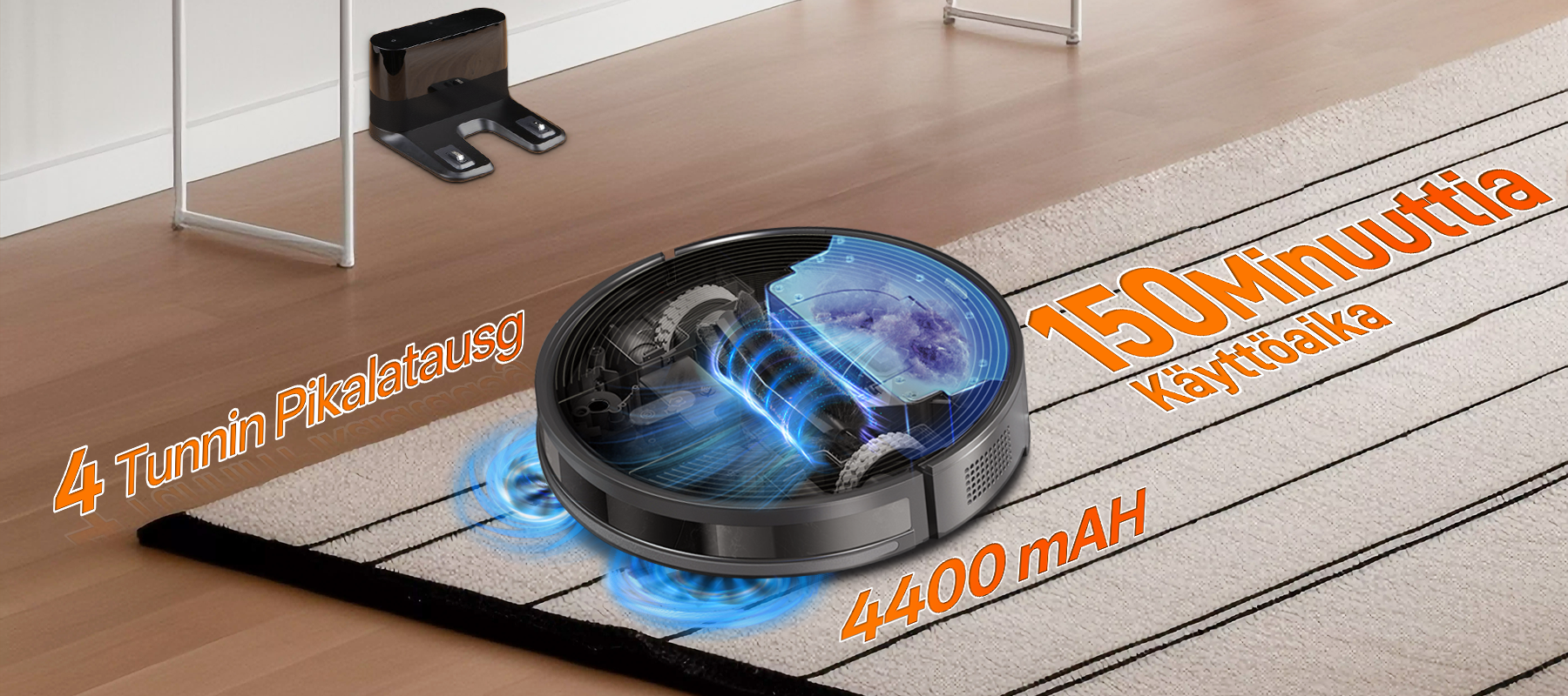 - AI Voice Integration - Tukee äänikomentoja, joten voit aloittaa siivouksen vain yhdellä sanalla.
